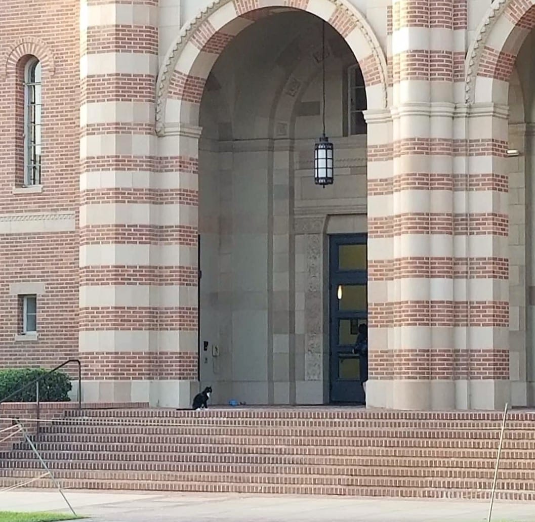 Powell Cat wasn’t the only cat I had met while studying at UCLA. In fact, I’m pretty sure he wasn’t even the first. The first cat I ever spotted on campus was, I think, a black cat roaming around the Library. Maybe it was the Powell Cat. But there were several cats spotted near the library every once in a while, so I’m not 100% sure.